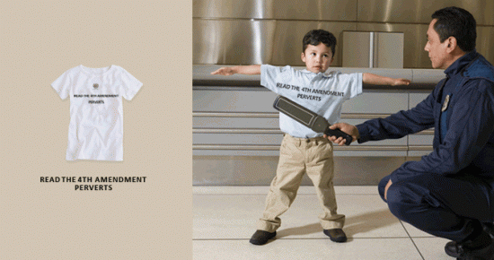 concept is a protest against intrusive TSA X-ray scanners. All clothing is printed with a metallic ink visible on scanners.